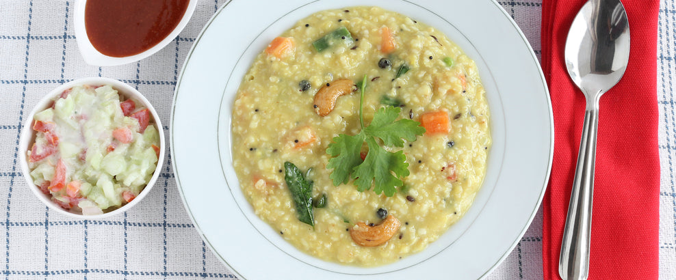 Rolled Oats Pongal brings a very nutritious touch to this popular breakfast food.